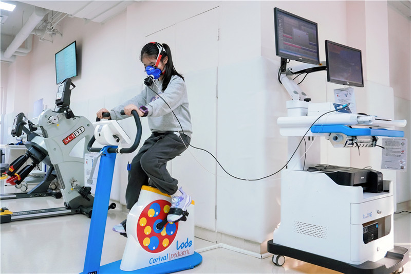 儿童体医融合中心设有体能训练区、本体感觉训练区、能量代谢监测区、运动评估区等,配备了人体能量代谢舱、运动负荷试验测试系统、3D复合运动训练台等多种先进设备,确保评估和训练的科学性与精准性。人体能量代谢舱能够监测儿童在不同生理状态下的能量代谢变化,为临床患病儿童和健康儿童的科学运动研究提供精准的数据支持;运动负荷试验测试系统和3D复合运动训练台可以对儿童的肌肉力量、耐力、协调性、平衡能力、心肺功能、视觉运动协调能力等多方面运动功能进行系统、全面的评估,精准掌握儿童运动能力的现状。